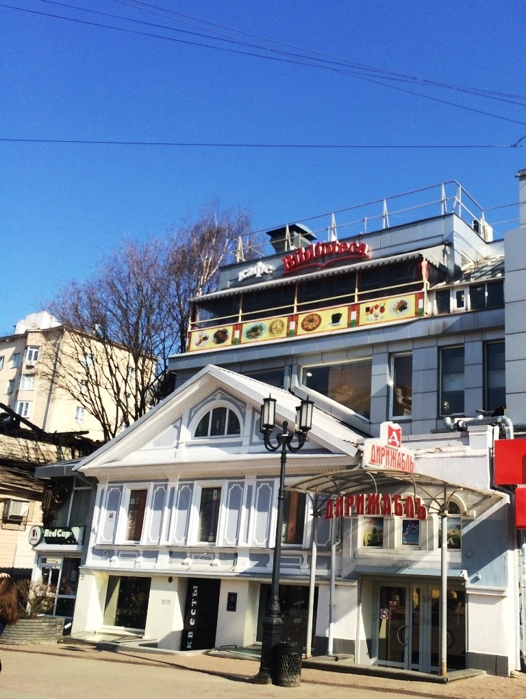 - Напротив «Березка-бар» расположен книжный магазин «Дирижабль» — мой самый любимый во всем городе. Причем это сеть магазинов, но самый большой ассортимент книг и всевозможных сопутствующих товаров от канцелярии до подарочной упаковки именно на Большой Покровской. Помимо книг, на цокольном этаже можно приобрести этнические сувениры и лучшие сорта чая и кофе.