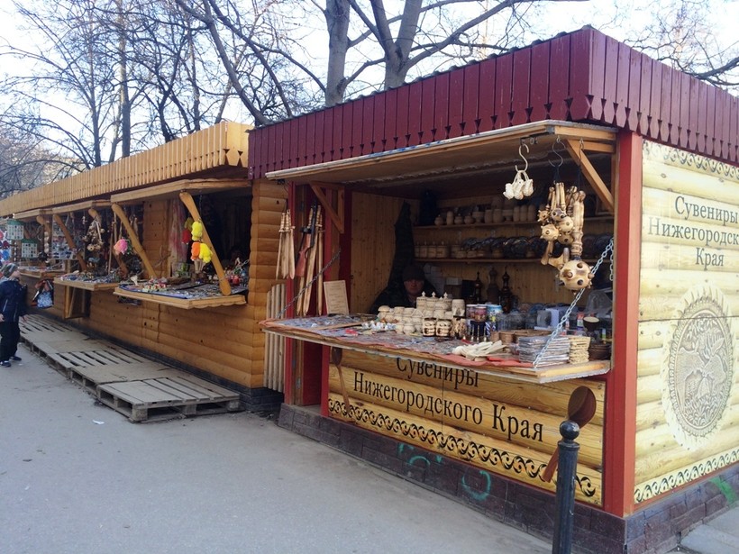 - Хотите приобрести маленькие подарки в память о городе?! Купите сувениры Нижегородского края в палатках около государственного университета имени Н.И. Лобачевского. Магнит на холодильник будет стоить от 100 RUB, а чайная кружка около 250 RUB. Где и какие сувениры можно купить на Большой Покровской читайте здесь.