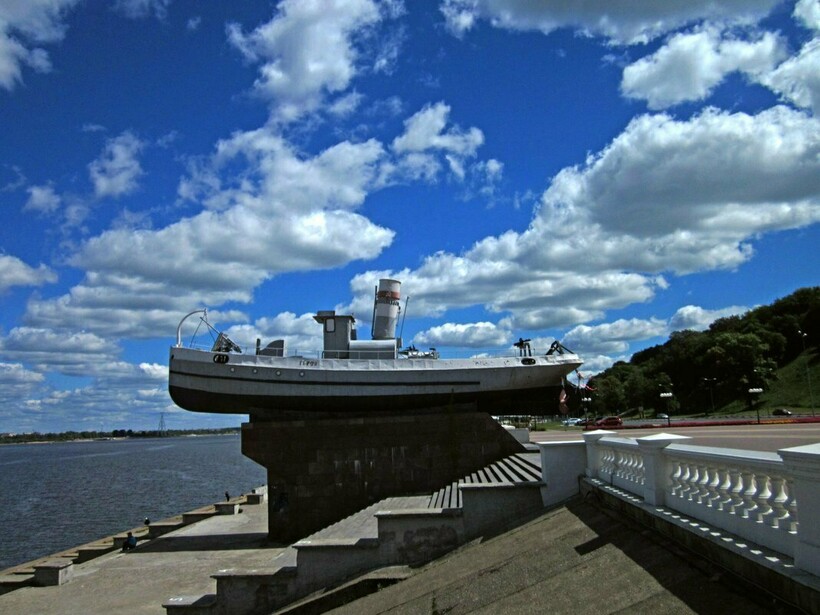 - Катер-герой. Небольшое судно, установленное на пьедестал в Нижнем Новгороде, выпущено на воду больше 100 лет назад. Катер прошел несколько воин, его переделывали и модернизировали пока, из уважения к преклонному возрасту, не отправили в почетную отставку. Теперь это исторический экспонат.