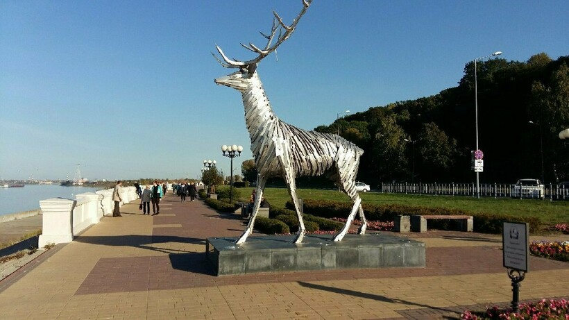 - Скульптура оленя. Ее привез в Нижний Новгород венгерский архитектор в честь дружбы двух народов: русского и венгерского. Памятник выполнен из металлических пластин. Новгородцы долгое время считали скульптуру странной. Но потом привыкли.