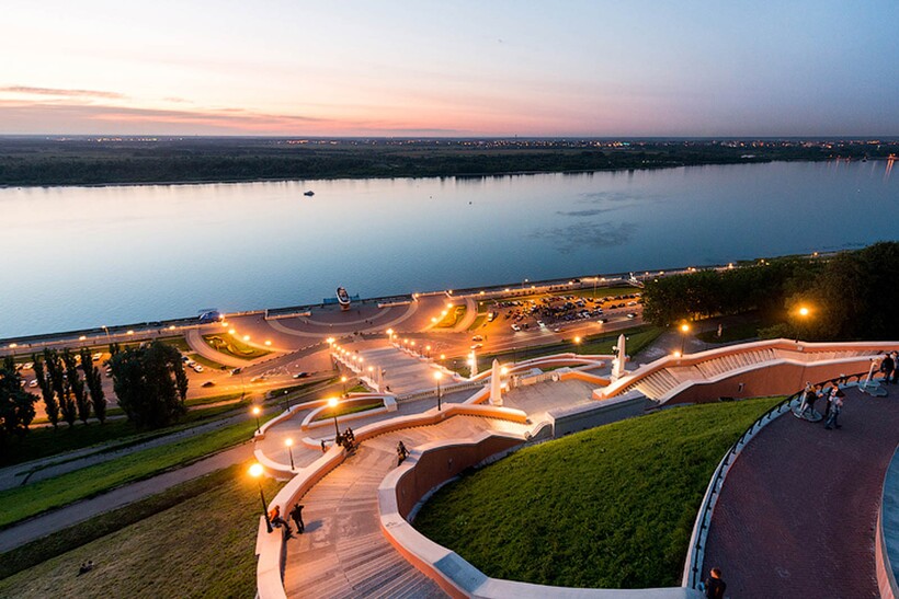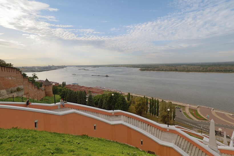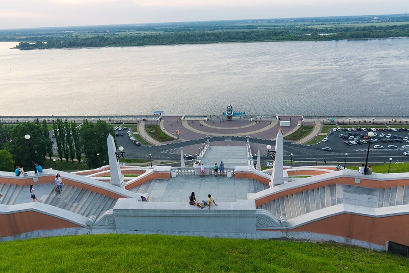 Самые красивые фото Чкаловской лестницы в Нижнем Новгороде получаются с верхней смотровой площадки. Оттуда открывается потрясающий вид на реку, на город — все красоты, как на ладони.