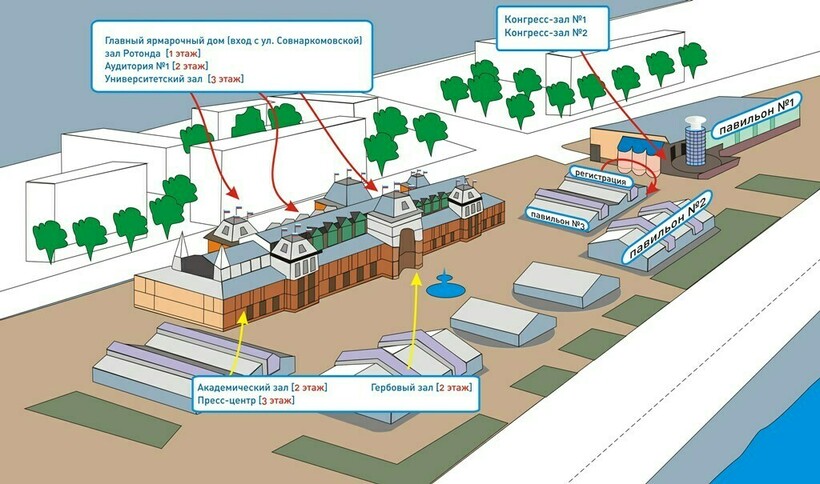 Чтобы найти выставочный комплекс по навигатору, введите координаты 56.3284456049, 43.9611679730.