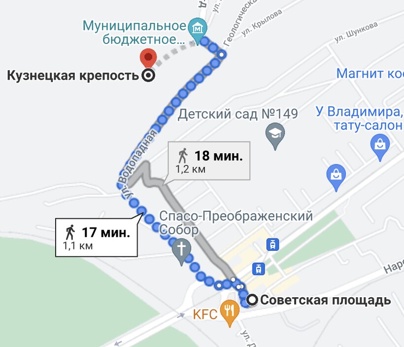 Практически все автобусы, идущие на Советскую площадь, останавливаются на железнодорожном и автобусном вокзалах Новокузнецка. От них до площади — около 30–40 минут езды. Общественный транспорт ходит часто, примерно с 5 утра и до 11–12 ночи. Проезд стоит 20 рублей. Оплатить его можно картой или наличными.