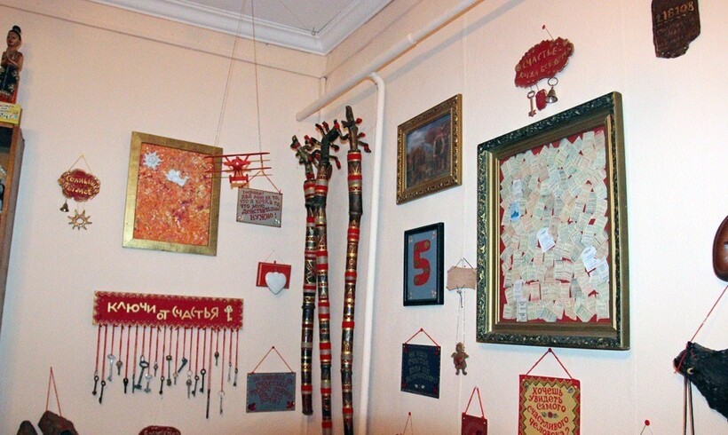 В музее собрано множество предметов со всего мира, которые ассоциируются у людей со счастьем — талисманы, амулеты, счастливые безделушки и многое другое.