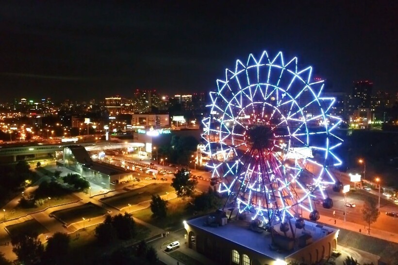 Любимое развлечение горожан и гостей Новосибирска — колесо обозрения. Оно необычно тем, что расположено на крыше Дома культуры. Работает круглосуточно, цена билета 350 рублей.