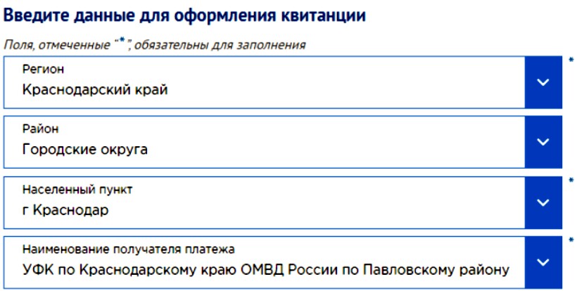 Оформление квитанции на оплату пошлины на сервисе гувм.мвд.рф