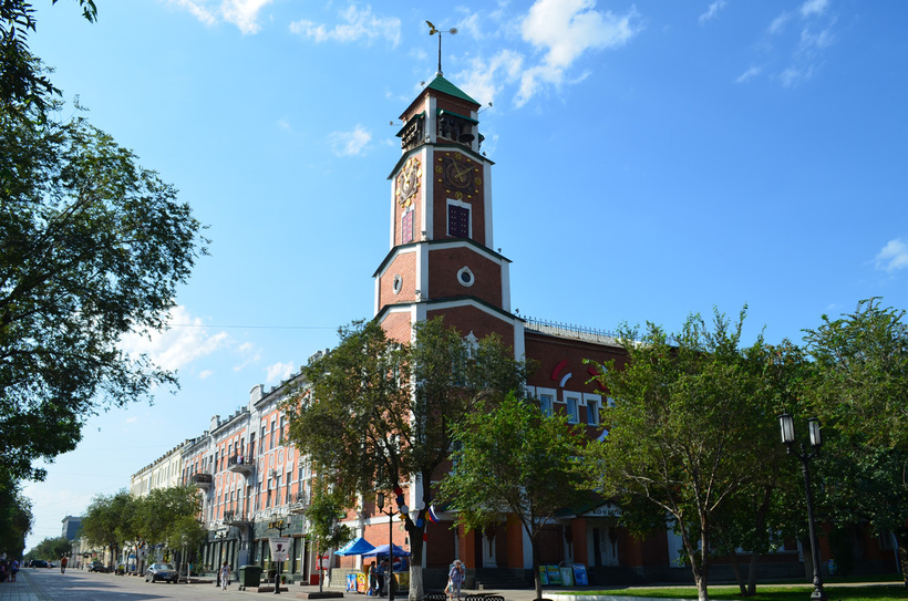 На Советской находится городская башня с часами, отбивающими каждый час.