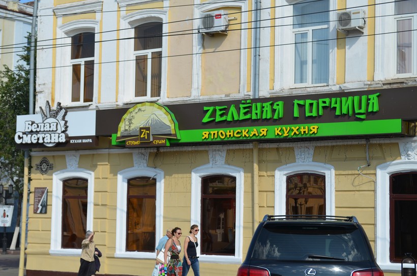 У сети ресторанов японской кухни «Зеленая горчица» довольно большое меню; в него входят японские, тайские и европейские блюда. Рестораны открыты в разных частях города, плюс есть круглосуточная доставка.