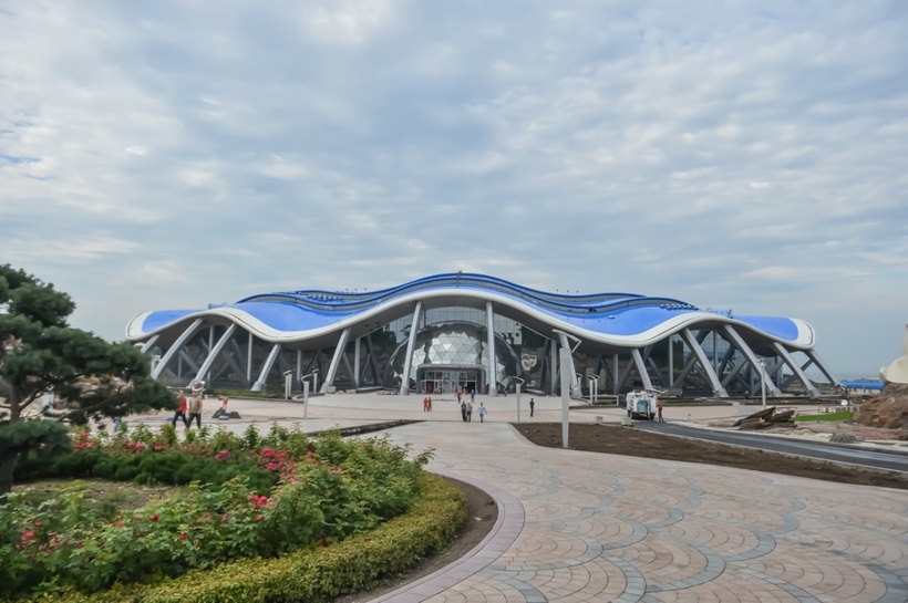 Здание, выполненное в виде 150-метровой морской раковины я заметила еще на подъезде к океанариуму. Здесь же, на острове Русский находится дельфинарий Владивостока. На территории работают детские клубы и студии, проводятся экологопросветительские мероприятия. Идет набор волонтеров.