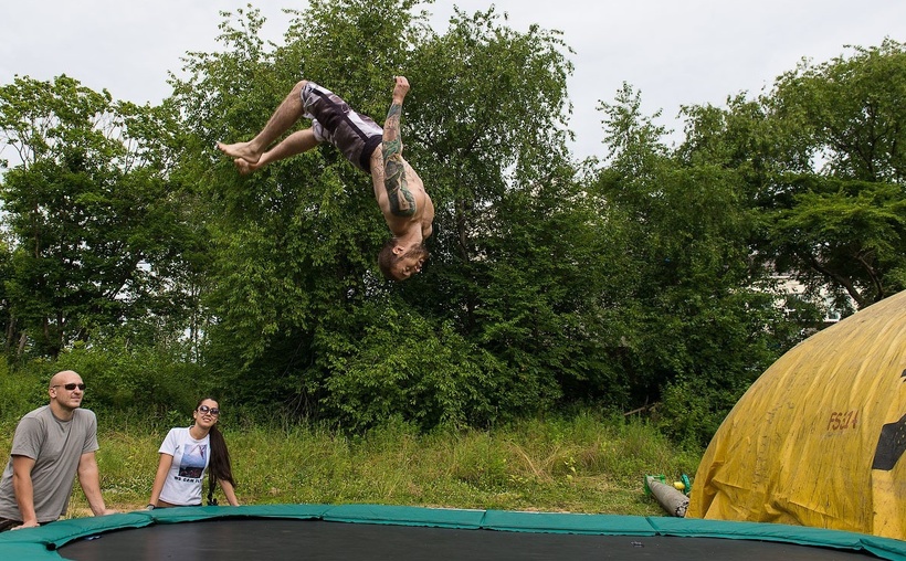 В 2015 году, на территории кампуса ДВФУ, открылся экстремальный центр «Точка притяжения». Молодежь приходит сюда покататься в скейтпарке и попрыгать на батутах, а также оборудована площадка для тренировки веревочных техник. Размаха центру, на мой взгляд, не хватает, но посетителей все равно достаточно. Больше всего мне понравилась огромная пневматическая подушка, на которой отрабатывают акробатические элементы, прыгая на нее с высоты 9 метров.