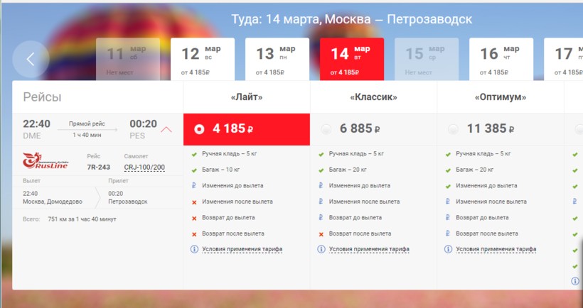 Стоимость такого рейса зависит от выбираемого вами тарифа. У «РусЛайн» их 4: