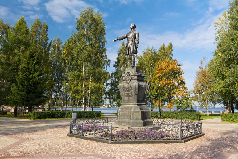 Это один из самых старых памятников Петрозаводска. Впервые его установили еще в 1872 году. Что же общего у великого реформатора и столицы республики Карелия? Ответ прост — именно Петр I основал этот город. Любопытно, что памятник императору несколько раз переносили с места на место в связи со сменой власти в стране. В конце концов, его поставили на Набережной, напротив Речного вокзала. Сегодня вокруг него разбиты клумбы с цветами. По моему мнению, памятник слишком вычурный и не отражает истинного масштаба гения Петра.