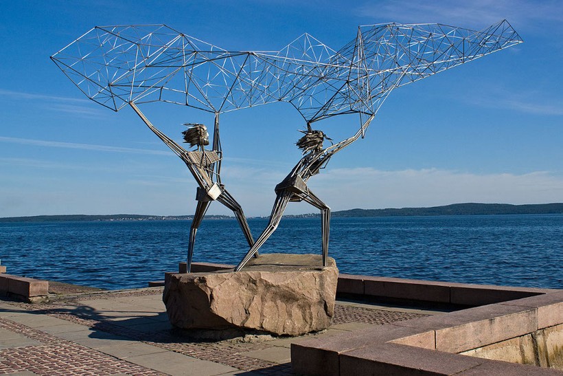 У Петрозаводска есть города-побратимы в разных странах. Они подарили городу множество подарков в виде скульптурных композиций, которые стоят на нашей набережной. Некоторые из них на первый взгляд кажутся очень странными, но зато дают повод поразмышлять на тему современного искусства. По крайней мере, я так и делаю.