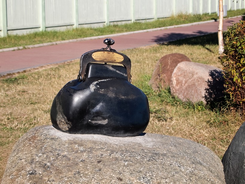 Рига подарила Петрозаводску вот такую необычную скульптуру в виде кошелька. По замыслу автора (латышского скульптора Айварса Керлиныша), он должен приносить удачу городу и его жителям. Считается, что одно лишь прикосновение к застежке кошелька приносит успех и благополучие во всем.