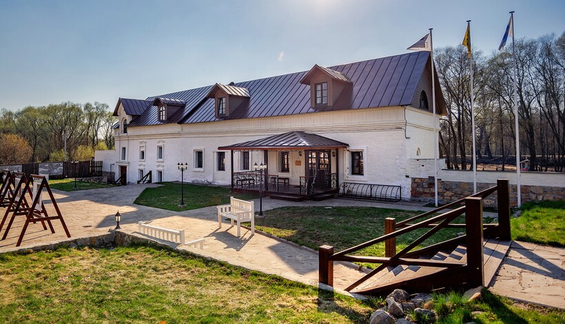 Гостевой дом «Гончаровъ» расположен в историческом здании XVIII. От него до главного дома усадьбы всего 2 минуты ходьбы. В отеле 11 уютных двухместных номеров. Цена — 3 680 ₽. Кроме проживания гостевой дом предлагает прокат лодок, катамаранов, велосипедов, коньков, лыж и санок для катания в местном парке. Здесь вы можете устроить семейный обед на плавучей беседке или попариться в баньке, плывущей по реке Суходрев.