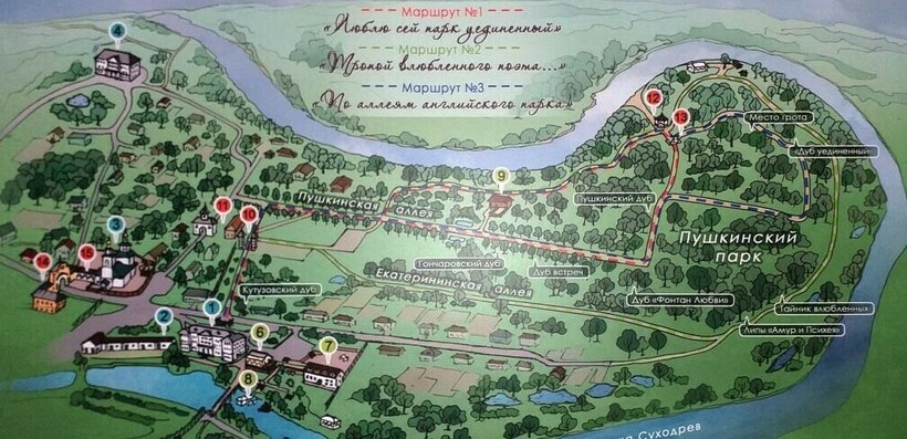 Историко-архитектурный комплекс достаточно большой. Здесь можно неспешно прогуляться по Пушкинской аллее, по которой некогда ступала нога поэта, полюбоваться постройками, соединяющими в себе черты барокко и классицизма. И не забудьте сделать фото усадьбы Гончаровых — умиротворенные картины природы и прекрасная архитектура располагают к фотосессии.