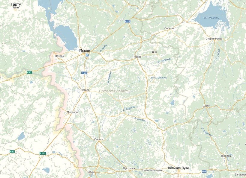- На автомобиле. Что касается качества дорог, то на трассе Р-56 Псков-Порхов оно вполне сносное, хотя и не такое, как участок Е-77 Рига-Псков. Если же вы решили посетить Порхов, следуя из Москвы, то в районе Великих Лук вам следует свернуть с превосходной по качеству трассы М9 на дорогу Р-58, плавно переходящую в Р-57. Вот здесь-то я не раз и не два вспомнил поговорку про дураков и плохие дороги: ехать придется порядка 200 км по «пьяной» извилистой дороге, на которую в любой момент может выйти стадо коров.