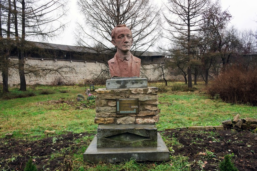 - Бюст Б.П. Калачева. Он выполнен в строгой советской манере и установлен рядом с музеем порховского подпольщика.