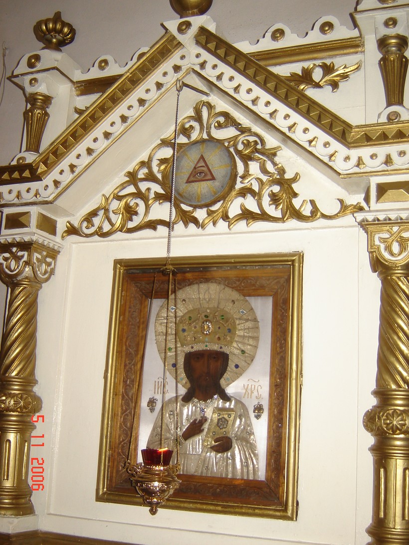Кроме того, я поначалу немало удивился, увидев над одной из икон треугольник с глазом посередине, который часто называют масонским. На самом деле, масоны позаимствовали его как раз из иконографии, а глаз есть не что иное, как Всевидящее око господне. Что касается треугольника, то это как раз символ Троицы, так что в Троицком соборе он особенно уместен.