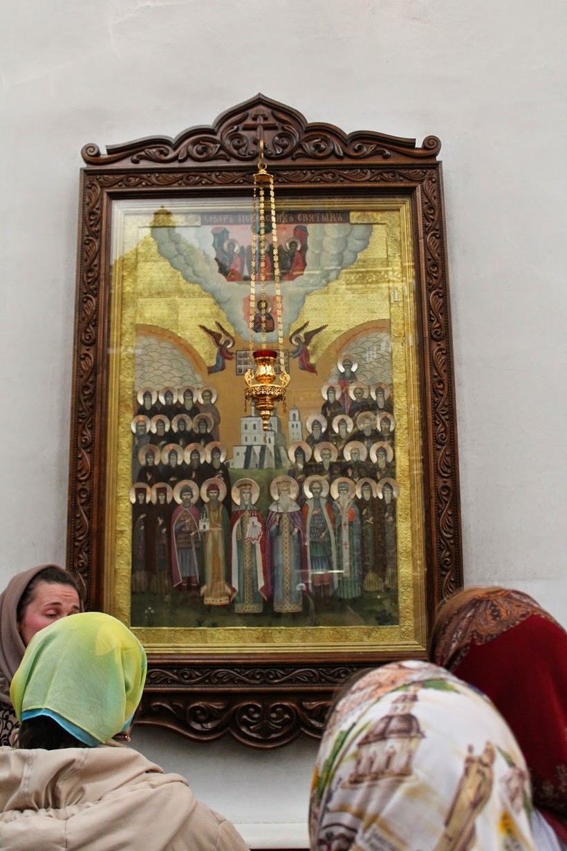 Что до самих икон, то на меня, как на человека не религиозного, самое сильное впечатление произвело современное полотно «Собор Псковских Святых», где изображены все канонизированные уроженцы псковской земли, начиная с княгини Ольги.