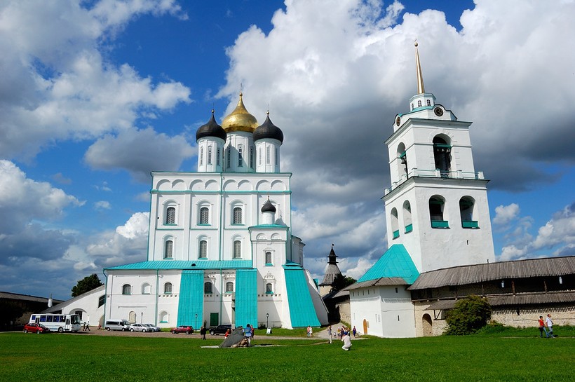 Обычно, когда я еду смотреть очередную древнерусскую крепость, она ассоциируется у меня, в первую очередь, со стенами и башнями. Внутренние постройки я чаще всего воспринимаю как отдельные объекты, особенно если речь идет о церквях. Впрочем, из всех правил есть исключения, и одним из них стал псковский Свято-Троицкий Собор. Псков в этом смысле вообще уникален, поскольку его храмы — это нечто большее, чем просто культовые сооружения.