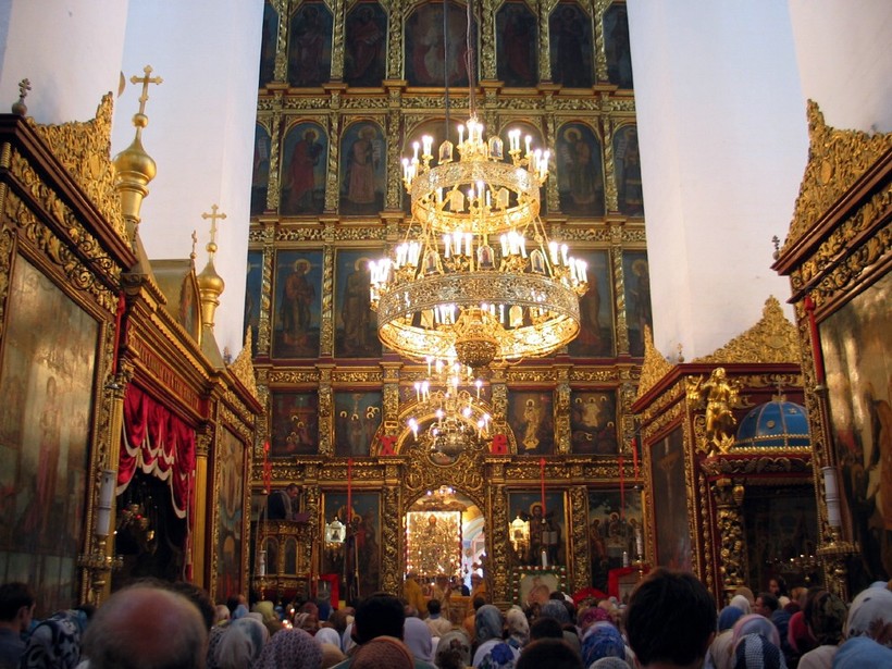 Когда я, поднявшись по крутой лестнице, попал внутрь храма, то сразу обратил внимание, что внушительный иконостас установлен на фоне голых стен. Настенные фрески были утрачены во время уже упомянутого пожара XVII века, но находящиеся в соборе иконы сполна компенсируют их отсутствие, являясь визитной карточкой храма. Достаточно сказать, что даже если вбить в поисковике «Троицкий собор Псков», иконостас окажется если не в первом, то во втором десятке тематических изображений.