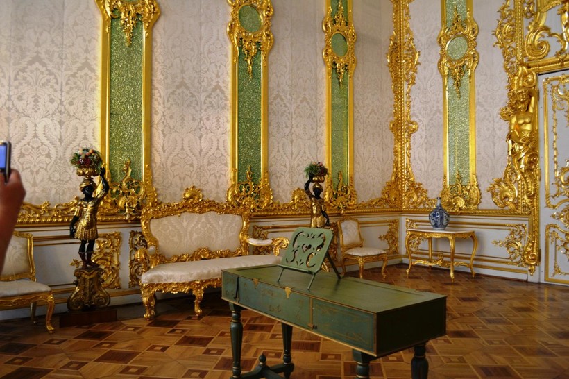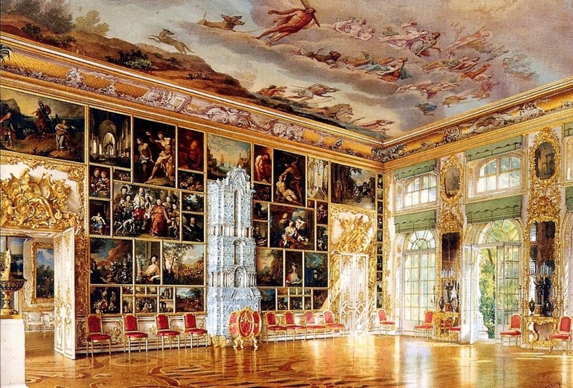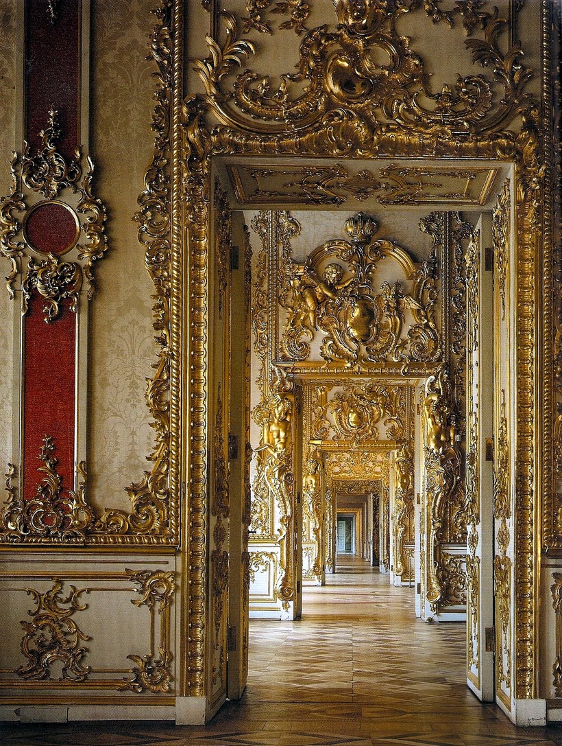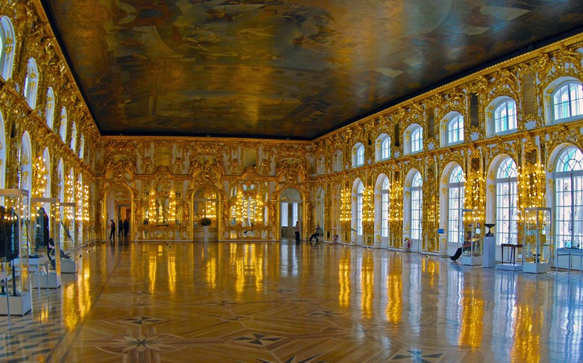 На балу в Екатерининском дворце гости с нетерпением ожидали появления императрицы. И, когда двери зала открывались, взгляд их поражала золотая парадная анфилада дворца, протянувшаяся вдоль всего здания. Императрица шла сквозь эту анфиладу, вся окруженная золотом, будто оживший портрет в золотой раме.