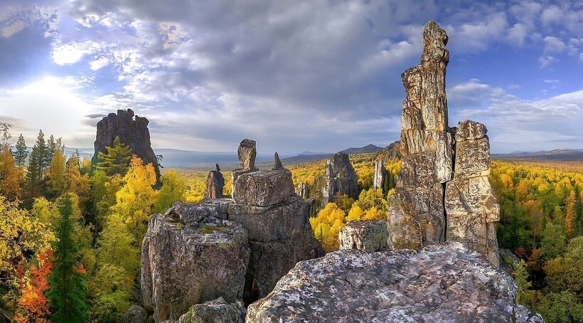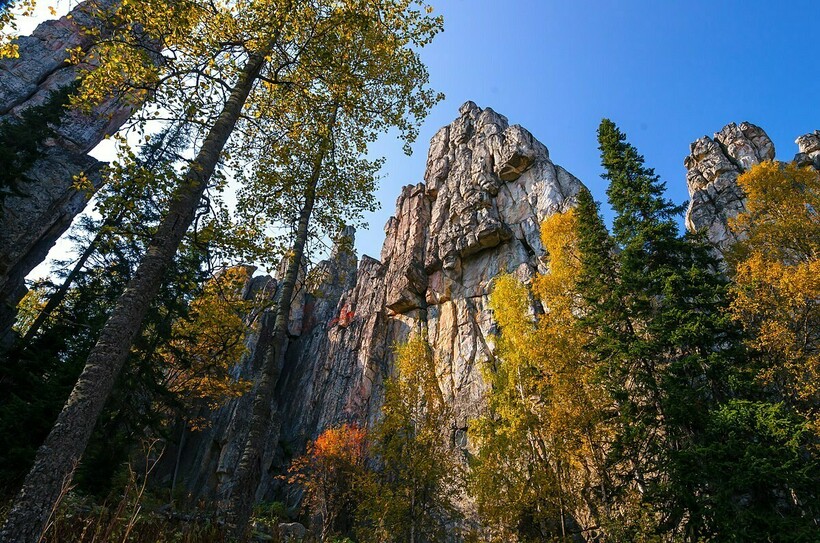 Инзерские Зубчатки особенно хороши осенью, когда лес во всей красе: лимонно-желтая и багряная листва перемежается с хвойной зеленью