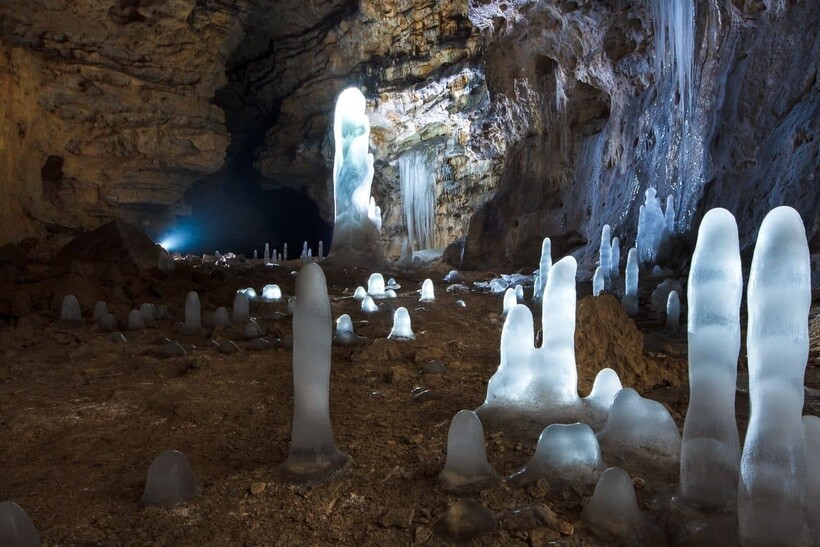 ЭТО ИНТЕРЕСНО! В зале с ледником круглый год поддерживается температура –12 C°. Раньше охотники использовали эту часть пещеры Победы как холодильник для хранения мяса животных.