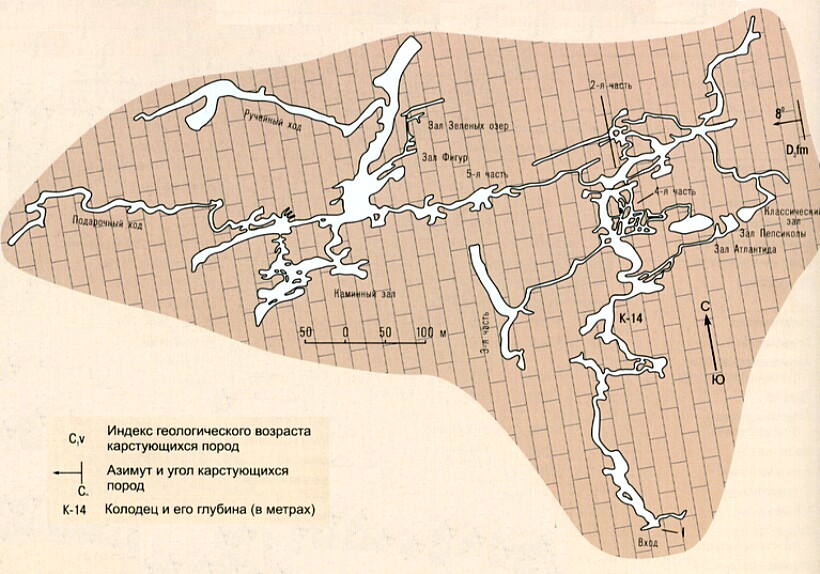 От ледника невысокий лаз ведет в галерею «Люстровая» (с множеством сверкающих сталактитов), от которой отходит завершающийся колодцем тоннель. Под колодцем начинается вторая часть грота Победы, с залами «Обвальный», «Атлантида» и «Пепси-кола». От последнего отходит система лазов, через ход «Сказочный» можно попасть к галереям «Фигур», «Зеленых озер», «Каминная».