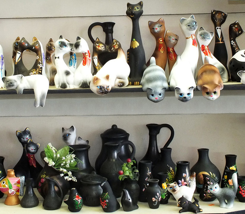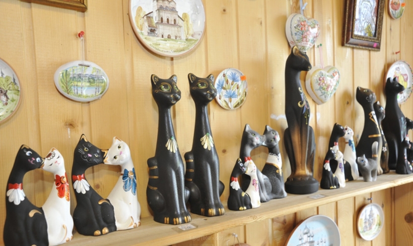 Я ещё предлагаю вам наведаться в «Дом Ремесел» по адресу 2-й проезд Толстовской набережной, д. 16.Здесь и выставки посетите, и сами что-то сможете изготовить. Особенно это место должно понравится детям.Сюда можно попасть с 10:00 до 18:00, а вопросы задать по тел: 8 (48536) 6-72-23. Здесь же гостей поджидает знакомство с чернолощёной керамикой.В мастерской вы не только познакомитесь с историей промысла, но увидите сам процесс этой керамической технологии, начиная с отмачивания глины и заканчивая росписью изделий.Заглянуть сюда получится с 9:00 до 17:00. Тел.: 8 (48536) 6-44-52. Мне было интересно узнать, что эта керамика демонстрировалась в 1902 году на Всероссийской выставке в Санкт-Петербурге. Там её удостоили диплома и приобрели даже для музея Государя Александра III (ныне Русского музея).И вы можете прикупить себе такой вот недорогой кошачий сувенирчик.