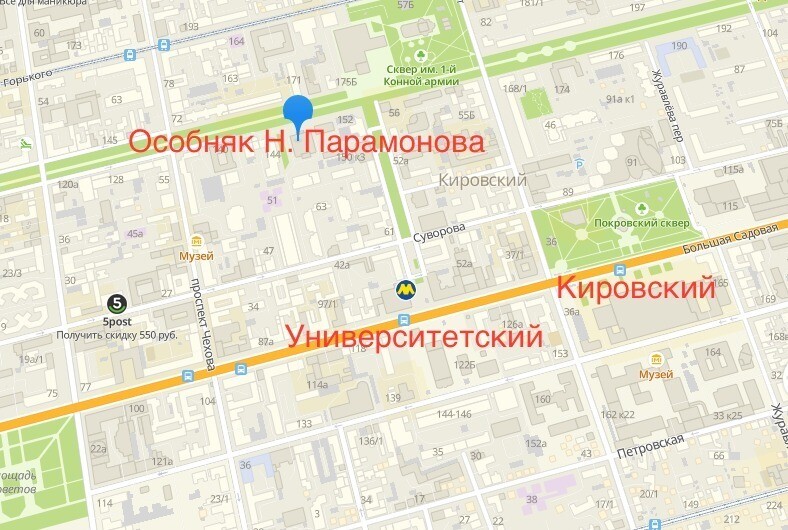 Особняк Н. Парамонова в Ростове-на-Дону: адрес, на карте города