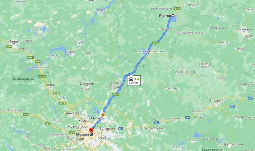 - Е-115 — из Переславля-Залесского (67 км, около часа);