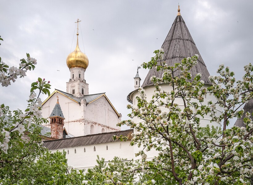 Ростовский Кремль. То, что белокаменный Кремль был построен как дом митрополита, а не в целях обороны, знают многие. А вот в цветущем Митрополичьем саду бывали не все. В мае зацветают плодовые деревья и превращают этот уголок Ростовского Кремля в самое посещаемое туристами место. К Кремлю лучами ведут несколько центральных улиц, например, можно выйти к нему от вокзала Ростова по улице Луначарского.