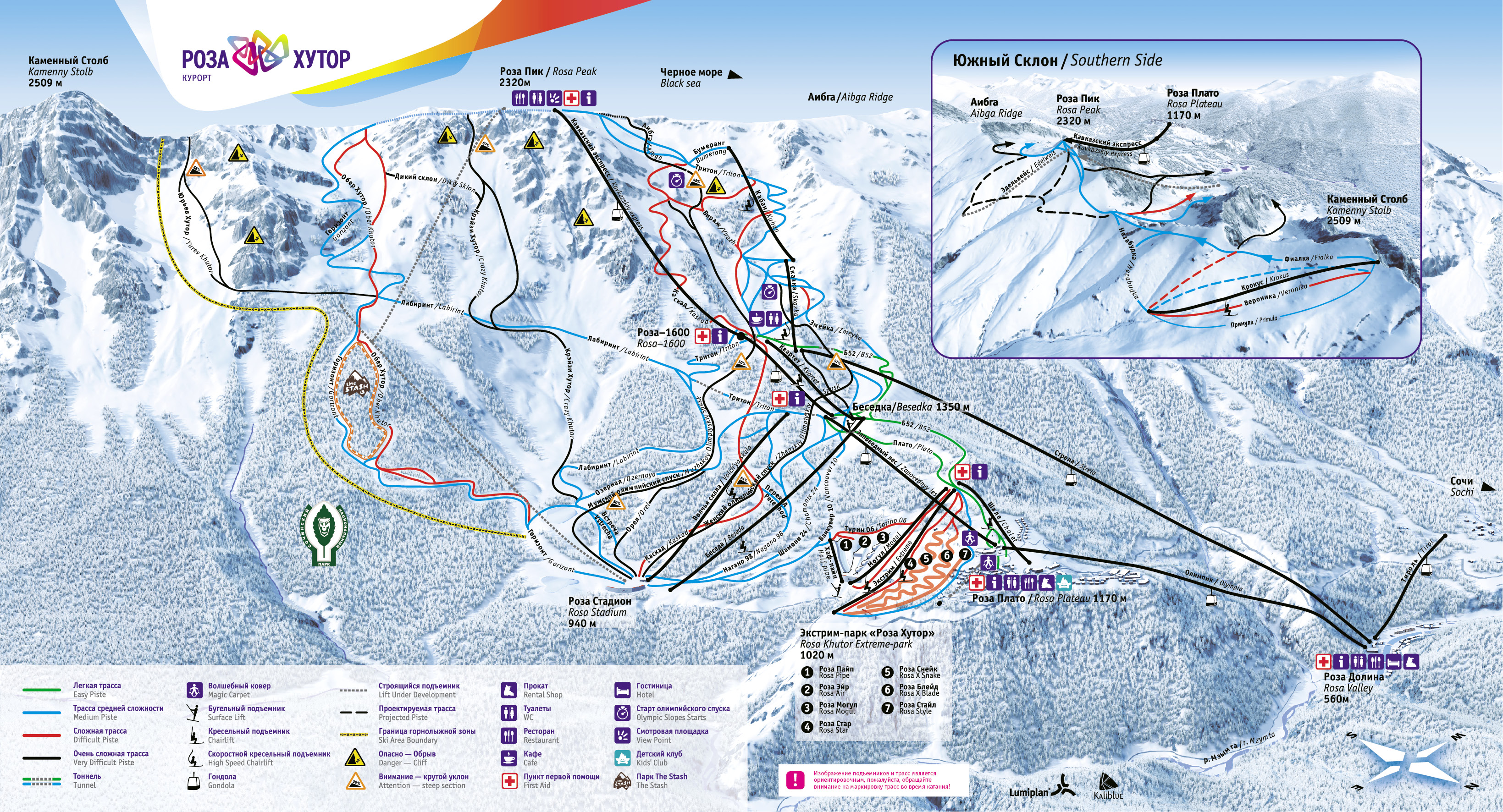 В списке популярных карт можно посмотреть карту Розы хутор на русском с достопримечательностями. Для скачивания карт достаточно щелкнуть мышкой по изображению.