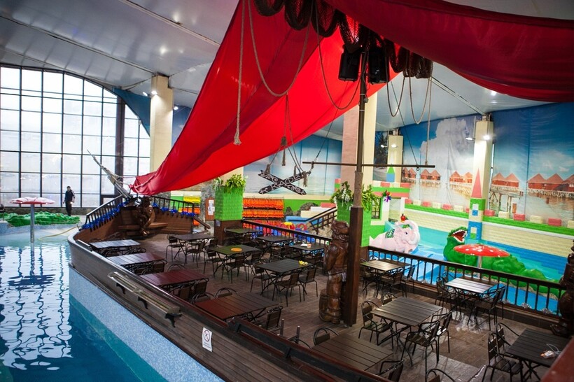 По спецзаказу аквапарк может использоваться для организации частных мероприятий. Кафе на территории вмещает до 600 человек, его можно арендовать для проведения свадеб, корпоративов, выпускного.