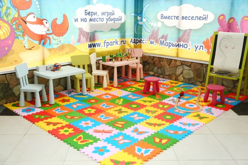 На территории аквапарка «Фэнтази» рядом с «Лягушатником» расположена детская комната для самых маленьких посетителей. В ней есть конструктор, игрушки, раскраски.