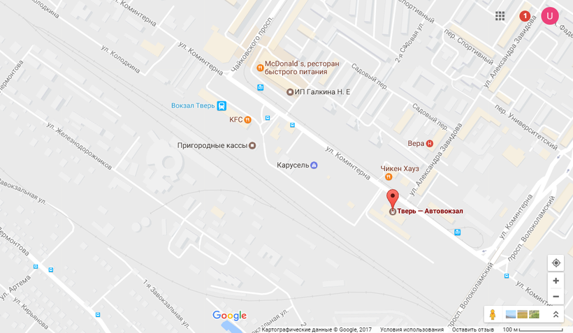 Автовокзал в Твери находится в центральной части города на ул. Коминтерна, рейсов достаточно много. Стоимость проезда — 320 рублей.