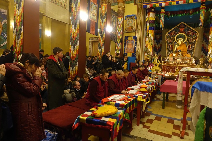 Если же вы решили посетить хурал, то, разумеется, нужно соблюдать все вышеперечисленные правила. Из того, что я еще не говорила — во время молебнов можно сидеть на скамьях либо на ковриках в позе лотоса. Нельзя вытягивать и скрещивать ноги во время молебнов.