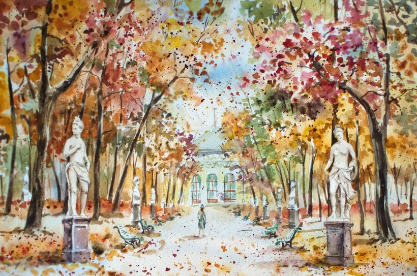 Мне кажется, что неспроста так много творческих натур привлекали эти аллеи. О них упоминал А. С. Пушкин, проникновенно писала Анна Ахматова, а вместе с ними и целая поэтическая плеяда. Кстати, подробнее о его влиянии на творчество литераторов можно при желании почитать здесь. Конечно, и для художников он часто становился (и становится в наши дни) уголком вдохновения.