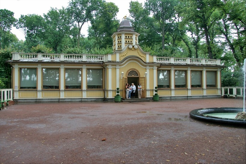 С юга у дворца был устроен гаванец. Здание с трёх сторон было окружено водой и добраться к нему можно было только на судах. Расскажу вам ещё одну необычность. По линии с Летним дворцом стараниями Г. Маттарнови были устроены открытые галереи для отдыха. Так вот, в центральной из них установили подарок папы Климента XI, сделанный этим католическим предводителем Петру I, а именно — статую Венеры. И вот эта самая скульптура стала первым в России выставленным на показ изображением обнаженного женского тела.