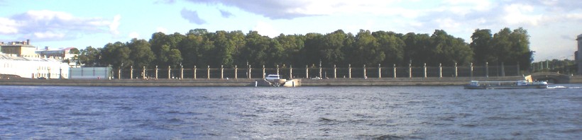 Кроме того, если дойти до Невы, огибающей его с севера, то вы увидите прекрасную панораму города, в том числе и Петропавловскую крепость. Особо хороша она на закате.