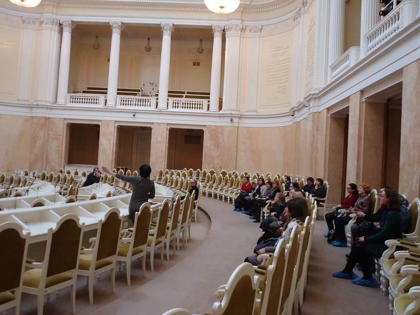 Экскурсии сюда устраиваются только по специальным заказам для отдельных организаций (вузов, муниципалитетов и пр.). Плановые, как правило, бесплатные. Попробуйте позвонить по телефону приёмной (дан ниже) и уточнить ситуацию. Если вам повезёт, и вы сможете на записаться на экскурсию, то при посещении дворца надо иметь при себе паспорт. Как вы понимаете, место, где заседает Законодательное собрание, — режимный объект.