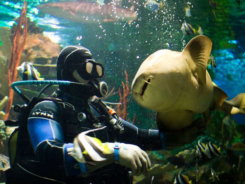Также вы можете посмотреть более захватывающее дух зрелище — «Шоу с акулами». В нем участвуют профессиональные водолазы и эти древнейшие морские хищницы (подробная информация ниже).