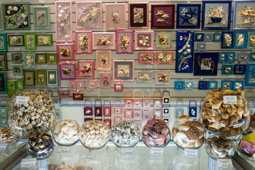 В этой лавочке чудес вы сможете приобрести что-то на память для себя или в качестве подарка родным и друзьям. Большинство товаров — на морскую тематику: раковины и художественные композиции на их основе.