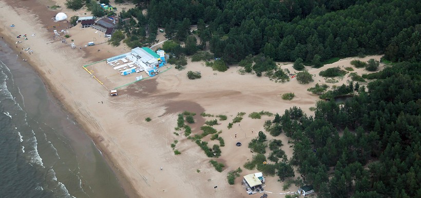 Находится этот частный пляж совсем рядом с общественным «Комаровским». Вход на территорию бесплатный. Здесь есть все, что только душе угодно: оборудованные кабинки для переодевания, шезлонги, детские площадки с батутами, крытый танцпол для молодежных дискотек и сцена для проведения мероприятий, волейбольные площадки, прокат спортивного инвентаря, кафе и рестораны. На пляже дежурят спасатели. Заход в воду пологий, берег песчаный. Отмечу, что у берега много тины, так что если вы хотите искупаться в чистой воде, придется долго шагать по заливу на глубину.