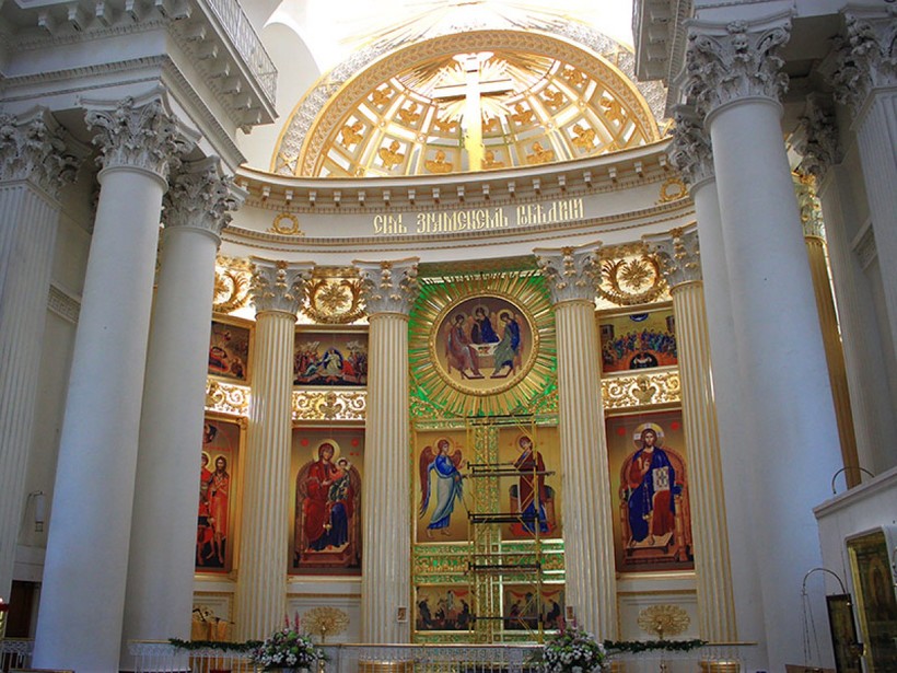 Также приведу вам тот факт, что Николай I, самолично всё проверяя, на эскизе иконостаса написал известнейшую строку «сим знаменем победиши», слова которой потом расположили над алтарём.