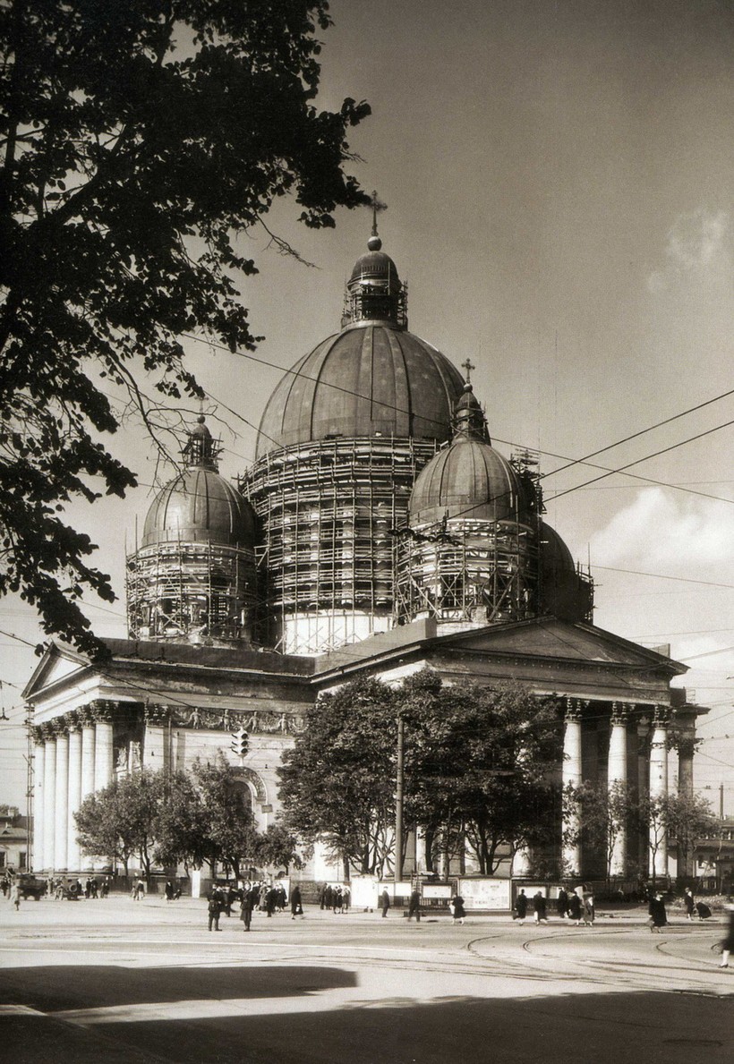 В период с 1933 года до своего закрытия в 1938 году собор имел кафедральный статус. Потом здание перешло театру им. Ленсовета под цех декораций. Ужасает меня и дальнейшая судьба храма. Перед войной в нём решили сделать крематорий. К счастью, эта жуткая идея была отклонена из-за расположения церкви в центре города. Но напрямую столкнуться со смертью Измайловскому собору довелось. Во время блокады здесь хранили трупы погибших от голода ленинградцев.