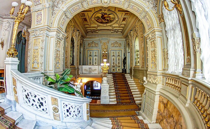 Роскошные интерьеры с обилием декора выполнены в нескольких неостилях, которые были популярны у столичных архитекторов Петербурга в XIX веке: