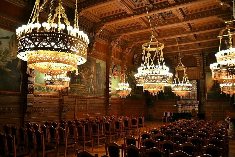 Образец архитектурного неостиля конца XIX века, Владимирский дворец на Дворцовой набережной в Санкт-Петербурге принадлежал семье великого князя Владимира Александровича, сына императора Александра II. Мебель и декор дворцовых комнат чудом избежали разграбления в 1917 г., и сегодня их можно увидеть такими же, как при прежних владельцах.